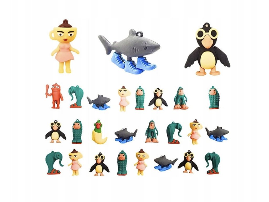 Uvnitř kalendáře objevíte roztomilá i bláznivá zvířátka a postavičky – od žraloků s nohama až po legrační ptáčky, šneky, želvy či zvláštní humanoidní figurky. Každý kousek je propracovaný do detailu a skvěle rozšíří vaši sbírku neobvyklých postaviček.