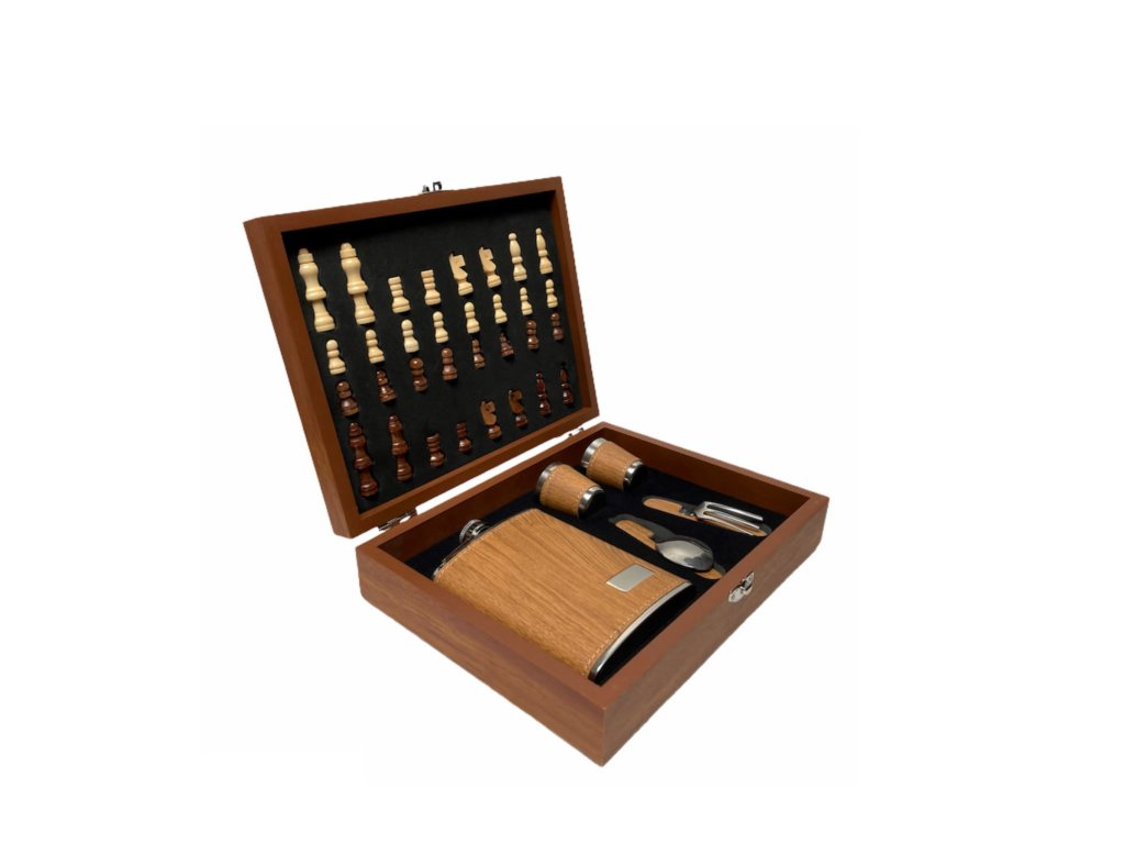 Dárkový set placatka + šachy (imitace dřeva)