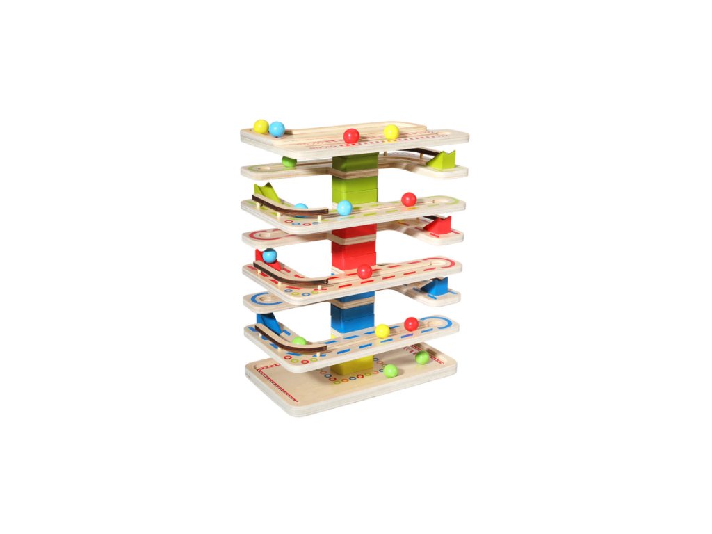 Dřevěná kuličková dráha s barevnými kuličkami - Marble race