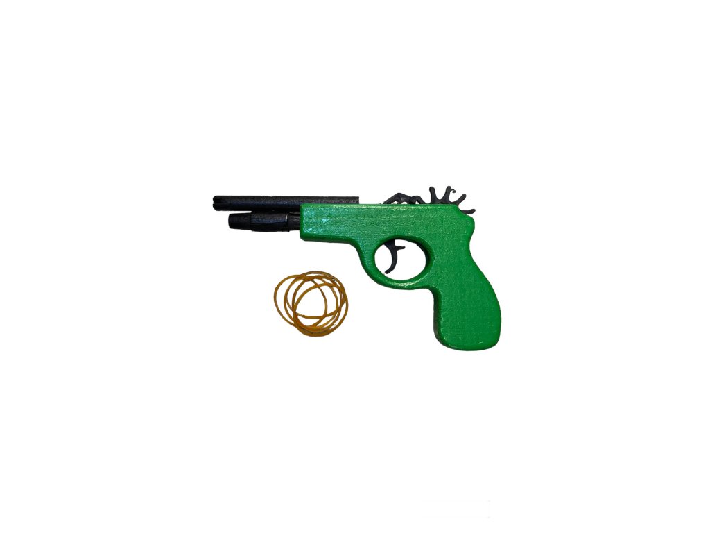 Dřevěná pistole na gumičky (barevná)
