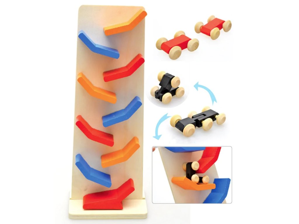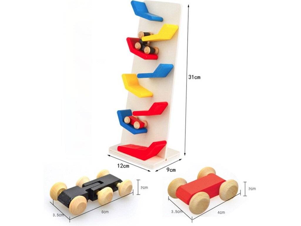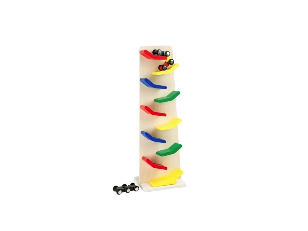 Tato dráha o rozměrech 13 x 9 x 38 cm je vyrobena z přírodního dřeva a kovu, což zaručuje odolnost a dlouhou životnost. Pevné materiály jsou navrženy tak, aby vydržely každodenní hraní a bezpečně sloužily vašim dětem. Díky kompaktním rozměrům je snadno přenosná i skladovatelná, ideální pro malé i větší herní koutky.