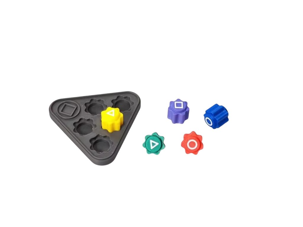 Upozornění: Sada obsahuje kostky s náhodnou barvou podložky (hnědá nebo černá) a náhodným motivem (čtverec nebo trojúhelník).