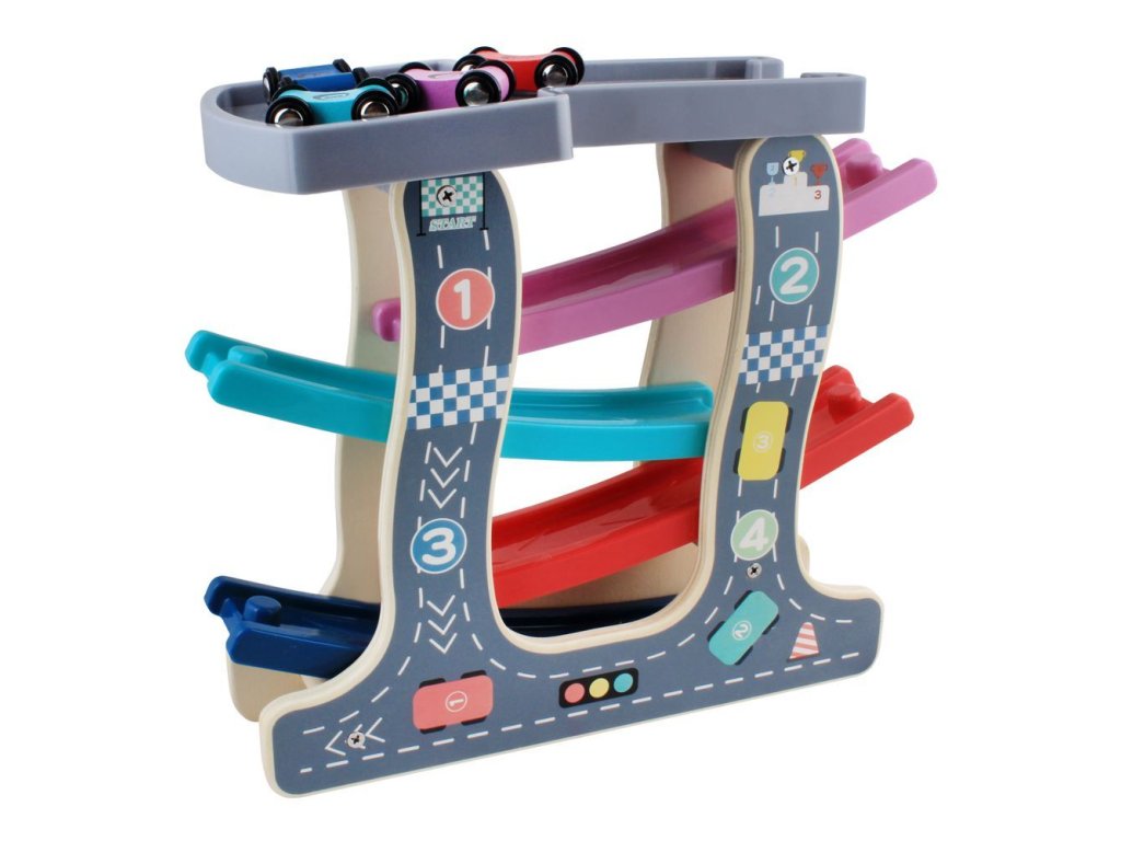 Miniaturní dřevěná autodráha - 4 autíčka