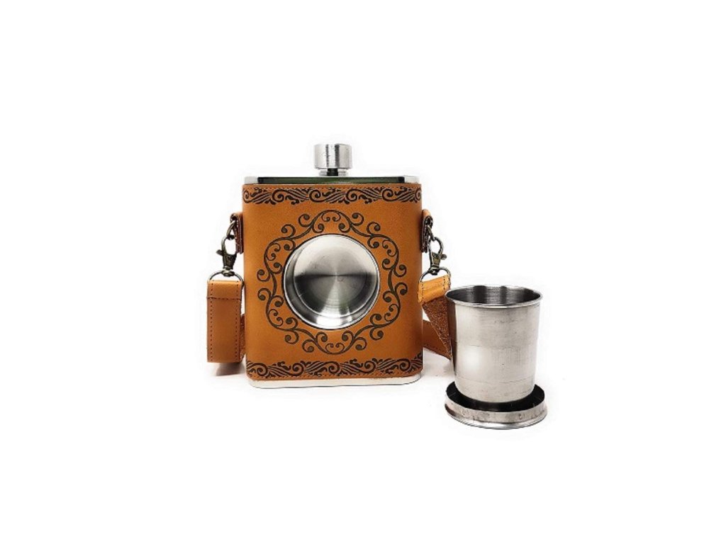 Objevte stylovou placatku o objemu 530 ml, která kombinuje praktičnost s jedinečným designem. Vyrobena z vysoce kvalitní ušlechtilé nerezové oceli, tato placatka je odolná, lehká a perfektní pro každou příležitost. Je uschována v elegantním koženém pouzdře, které dodává produktu exkluzivní vzhled a zároveň chrání jeho povrch před poškrábáním.
