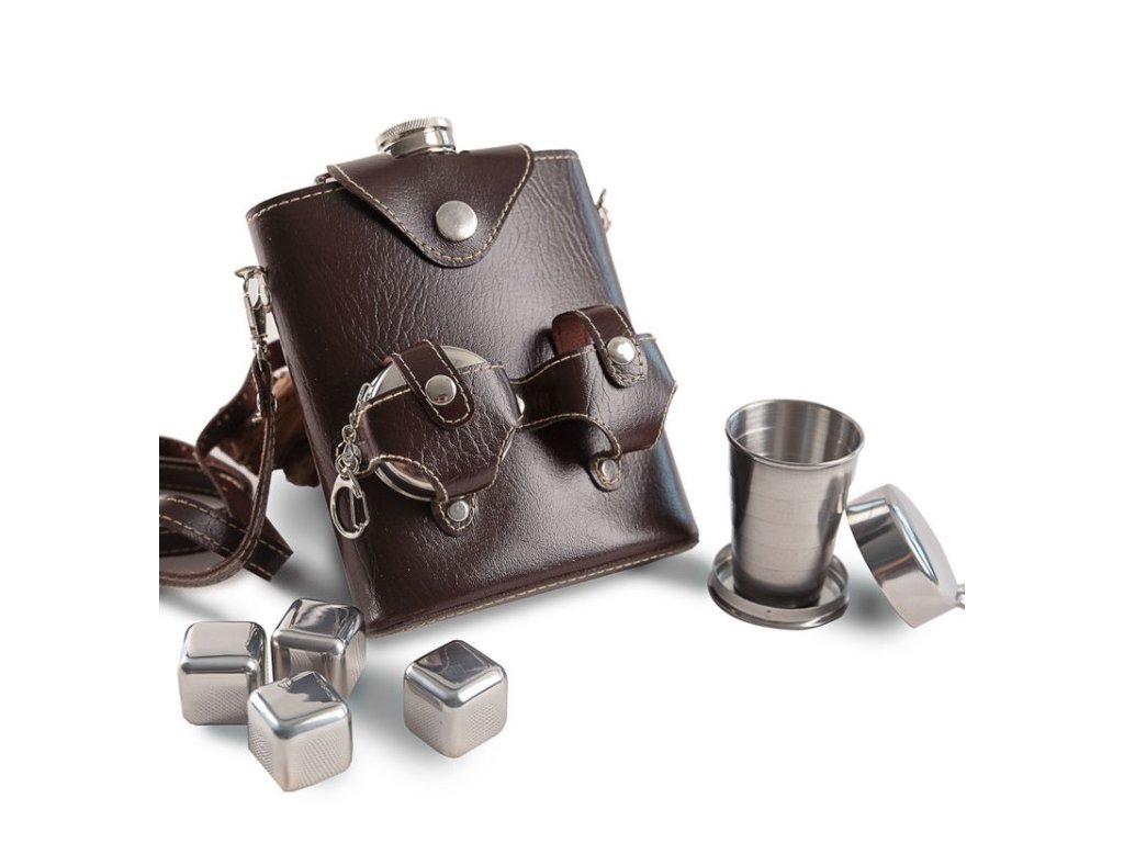 Placatka není jen praktická, ale i stylová. Dodává se s elegantní hnědou koženkovou brašnou vybavenou popruhem přes rameno, takže ji můžete pohodlně nosit kamkoliv s sebou. Brašna navíc obsahuje dva skládací panáky, které oceníte při každé příležitosti – ať už jste na výletě, festivalu nebo pikniku.