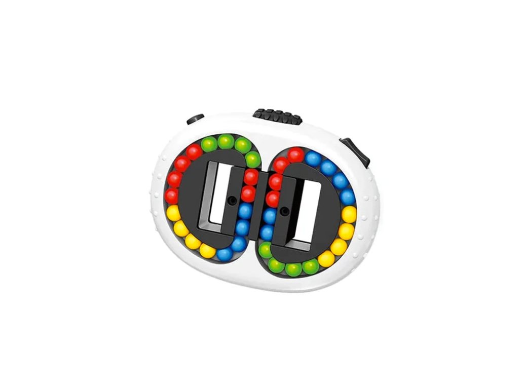 Princip je překvapivě jednoduchý, a přesto návykový. Středová část se otáčí pomocí tlačítka na vrcholu plastové konzoly, což umožňuje přesouvat kuličky po čtyřech okruzích na obou stranách základny. Začínáte promícháním kuliček a pomocí promyšlených tahů je zase roztřídíte tak, aby v každém okruhu byla stejná barva. Připravte se na výzvu, která prověří nejen vaši trpělivost, ale i šikovnost prstů – ideální pro každého milovníka hlavolamů!