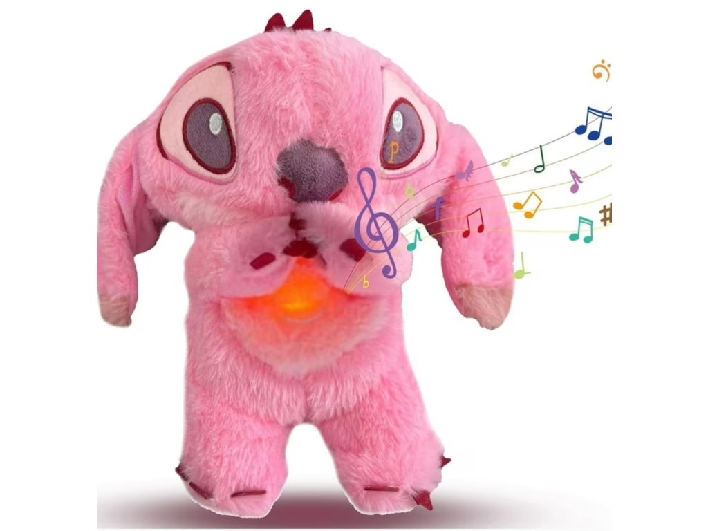 Seznamte se s plyšovým plyšákem ve tvaru oblíbené postavy Stitch z filmu Lilo & Stitch. Tento roztomilý a měkký kamarád je navržen tak, aby vašemu dítěti pomáhal snadněji usnout a vytvořil příjemnou, uklidňující atmosféru v dětském pokoji. Díky funkci jemného světla a relaxační hudby poskytuje pocit bezpečí a pohodlí při usínání i během nočních probuzení.