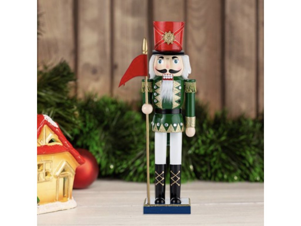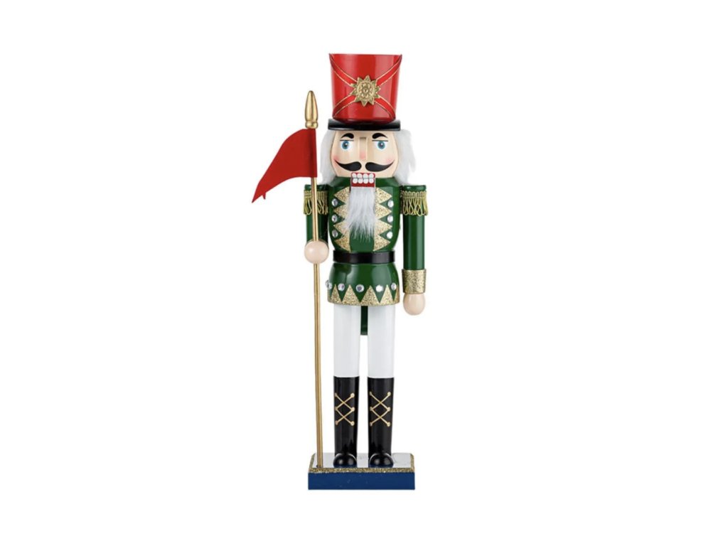 Vánoční figurka louskáček - voják s červenou vlajkou 39cm