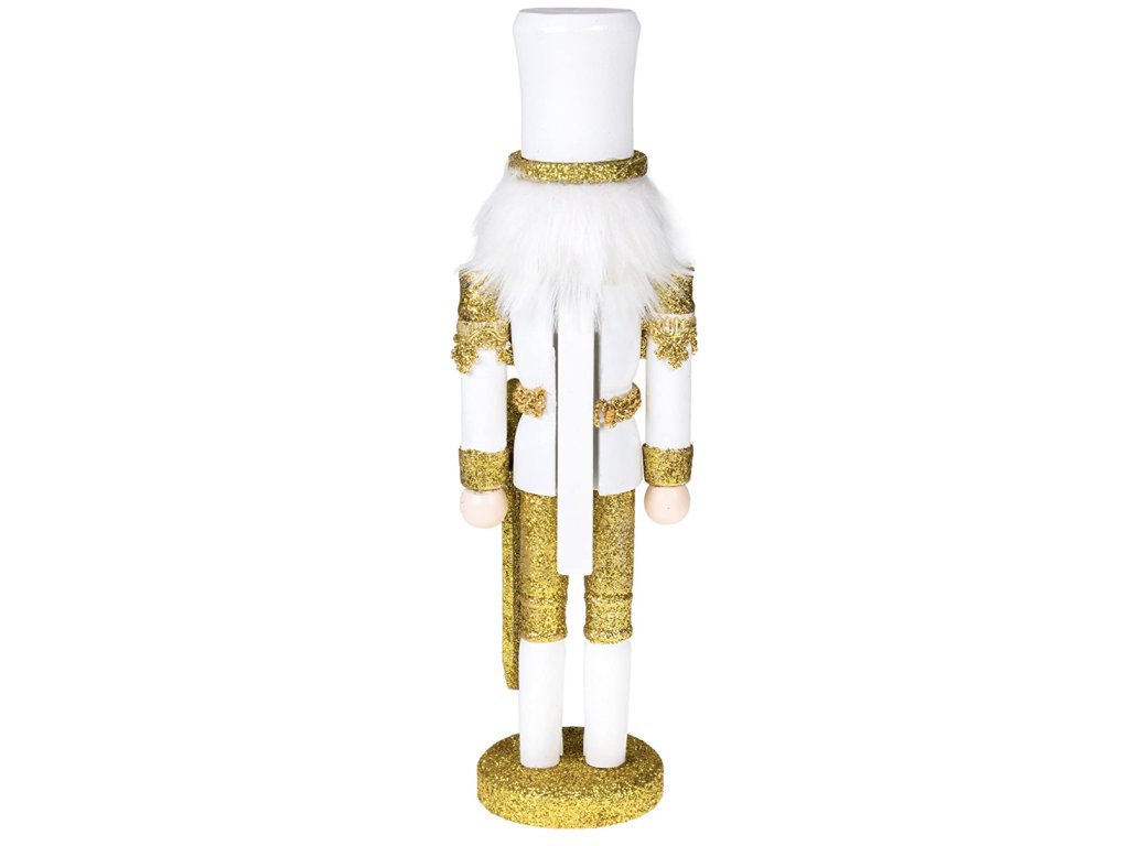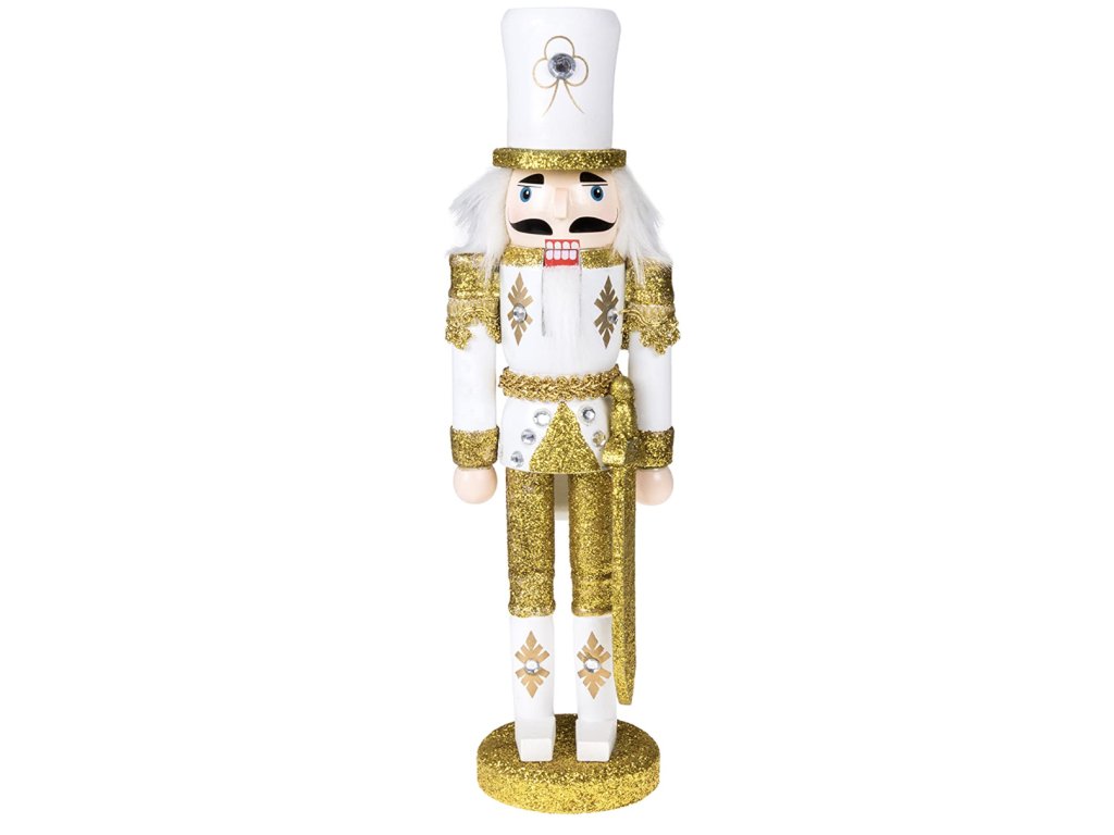 Vánoční figurka louskáček - voják se šavlí (třpytivá bílo-zlatou uniformou)