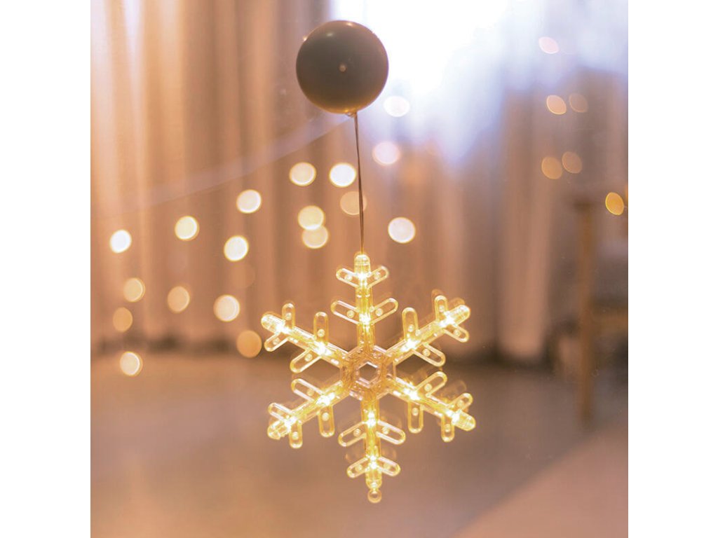 Vánoční LED závěsná dekorace do okna - Vločka (teplá bílá)