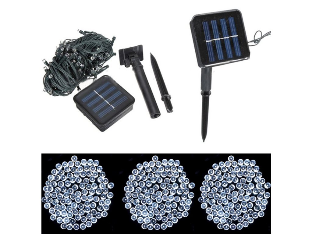 Venkovní vánoční led osvětlení na solární panel - studená bílá (10 m)