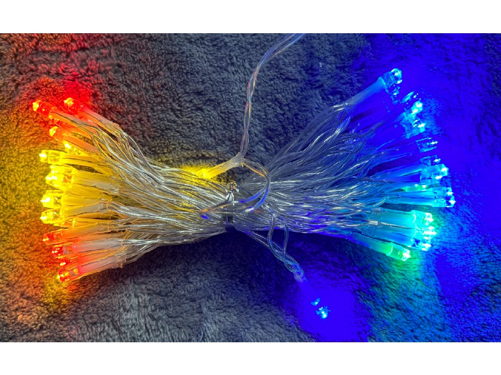 Vnitřní vánoční led osvětlení na baterie - Barevná (čirý kabel)
