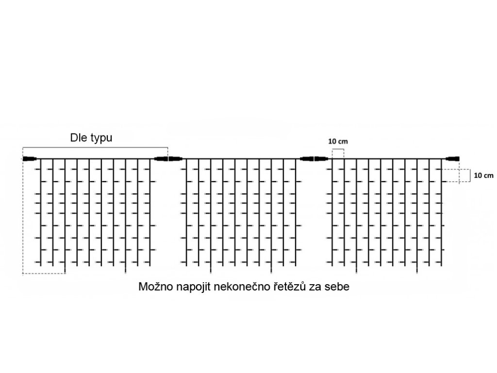 - Neomezená možnost propojení umožňuje prodloužení světelné záclony dle potřeby