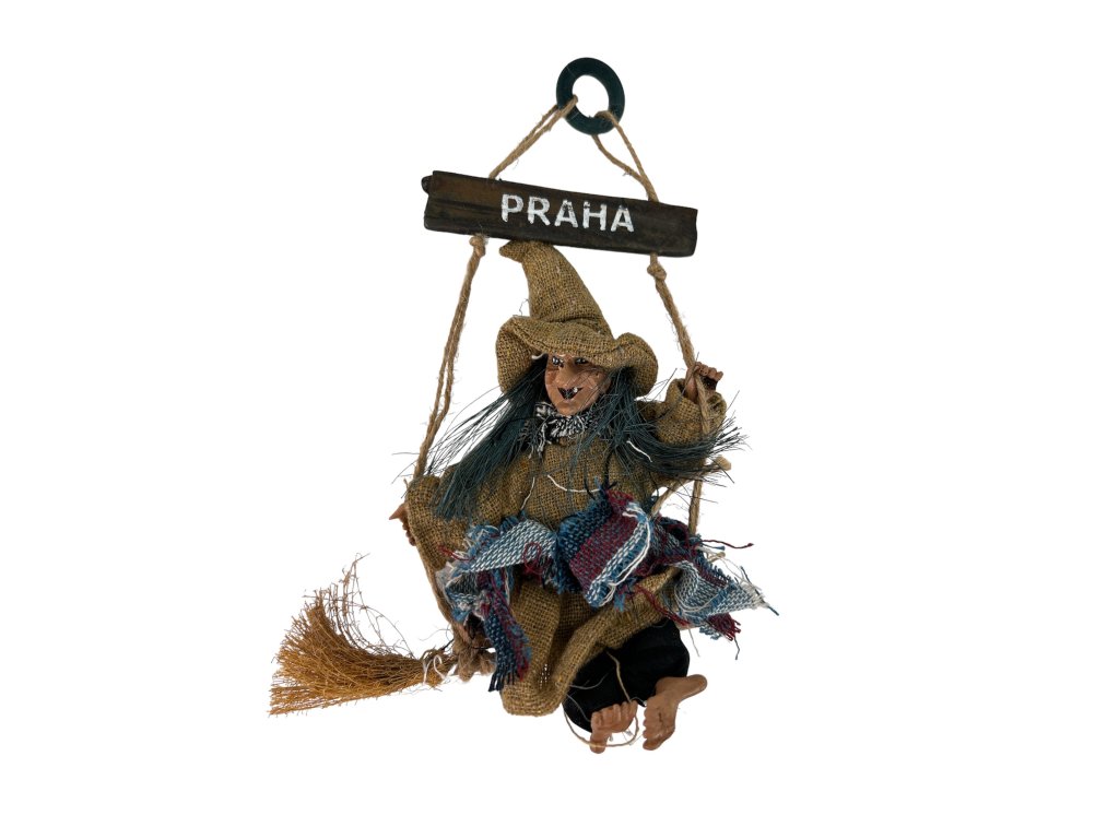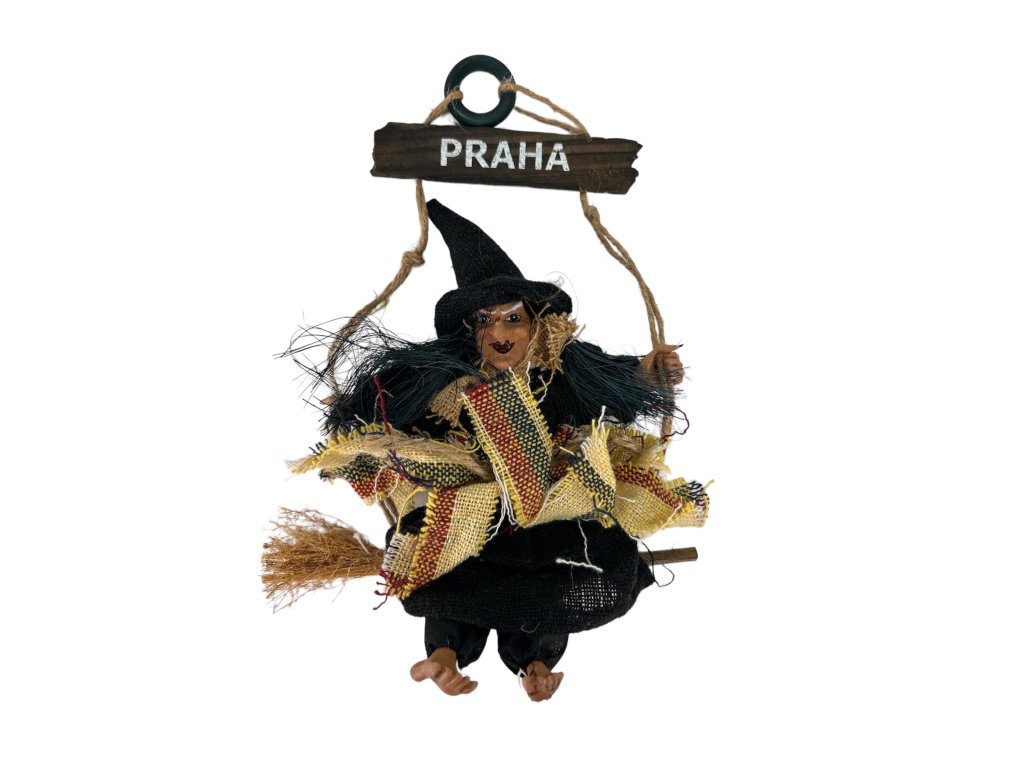 Závěsná čarodějnice na koštěti Praha - 25 cm (náhodná barva)